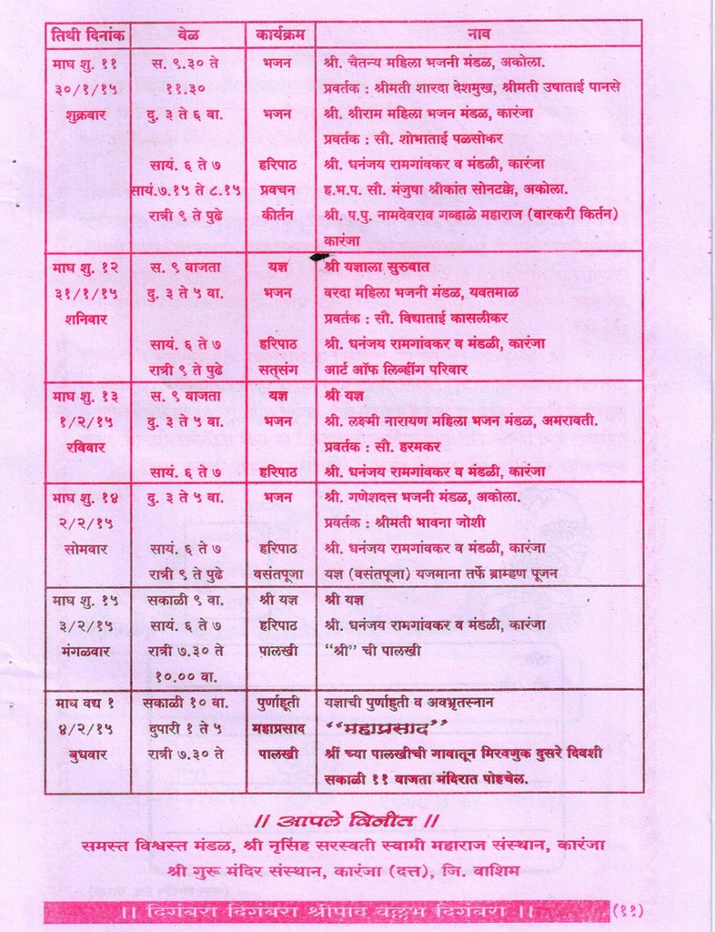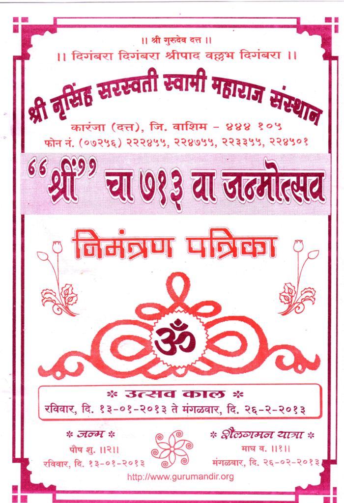 Saraswati Swami Maharaj's Jayanti will be celebrated with the